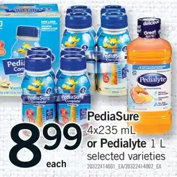 Fortinos PEDIASURE, 4X235 ML OR PEDIALYTE, 1 L offer