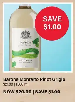 | Barone Montalto Pinot Grigio | LCBO | $21.05 | $20.00 | $1.05 Discount | 01 February 2026 | 28 February 2026 | |