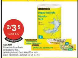 Pharmaprix NO NAME Paper Towels (2 Roll), Plastic Wrap (30 m) or Aluminum Foil (25') offer