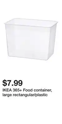 | Ikea 365+ food container with lid, rectangular/plastic | IKEA | $9.99 | 05 October 2023 | 11 October 2023 | |||