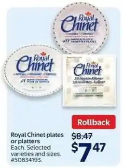 8Walmart Royal Chinet plates or platters offerRoyal Chinet plates or plattersWalmart$8.49$7.47$1.02 Discount12 February 202604 March 2026 View offer