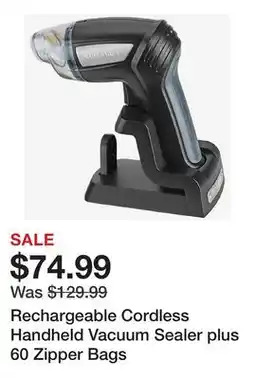 TSC Stores Rechargeable Cordless Handheld Vacuum Sealer plus 60 Zipper Bags offer