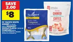 Real Canadian Superstore PC PACIFIC WHITE SHRIMP, 31-40/LB, 400 G, SEAQUEST WHOLE TILAPIA 1.36 KG OR POMPANO, 800 G offer