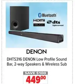 2001 Audio Video DHTS316 DENON Low Profile Sound Bar, 2-way Speakers & Wireless Sub offerDHTS316 DENON Low Profile Sound Bar, 2-way Speakers & Wireless Sub2001 Audio Video$449.0024 December 202501 January 2026