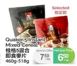 | QUAKER CÉRÉALES MÉLANGÉES INSTANTANÉES, 460g-518g | T&T Supermarket | $5.77 | 16 May 2025 | 22 May 2025 | |||