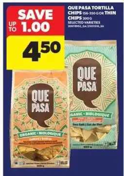 | Que pasa tortilla chips 300/350 g or salsa 420 ml | Real Canadian Superstore | $3.99 | 11 May 2023 | 17 May 2023 | |||