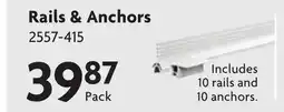 This week there are several deals for Rails available, such as at Home Hardware and other major chains. You will find offers like buy 1 get 1 free and Save up to 25$ or sharp discount prices on Rails & Anchors, Lumber Mill EZ-Rails and Connector Kit & Storex Deluxe File Caddy with Letter Hanging Rails, 15 x 15 x 40, Black. With the filters you can easily select by packaging type, quantity, or your preferred retailer.
