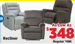 This week there are several deals for recliner available, such as at Surplus Furniture and other major chains. You will find offers like buy 1 get 1 free and Save up to 25$ or sharp discount prices on Recliner, Trouper Fabric Recliner & Mercury Fabric Recliner. With the filters you can easily select by packaging type, quantity, or your preferred retailer.