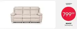 1Meubles RD Benoit - Reclining Sofa offerBenoit - Reclining SofaMeubles RD$1,290.31$799.99$490.32 Discount02 February 202608 February 2026 View offer