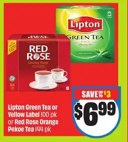 FreshCo Lipton Green Tea or Yellow Label 100 pk or Red Rose Orange Pekoe Tea 144 pk offer