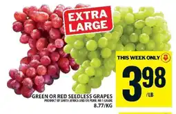 Food Basics EXTRA LARGE GREEN OR RED SEEDLESS GRAPES offerEXTRA LARGE GREEN OR RED SEEDLESS GRAPESFood Basics$1.9512 February 202618 February 2026