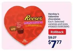 Rexall HERSHEY'S Kisses 180g or REESE'S Hearts or Red Velvet Miniatures 161g offerHERSHEY'S Kisses 180g or REESE'S Hearts or Red Velvet Miniatures 161gRexall$5.4906 February 202612 February 2026