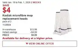 1Costco Kodiak microfibre mop replacement heads offerKodiak microfibre mop replacement headsCostco$13.99$9.99Save $419 January 202601 February 2026 View offer