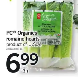 Real Canadian Superstore PC ORGANICS ROMAINE HEARTS, 3' S offer