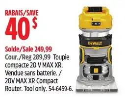 On this page you can compare the current prices of Router at different retailers such as Home Hardware. Whether you are looking for Compact Router, 20V MAX XR Compact Router & Router Work Table with Dual Outlets, you will immediately see where you can buy the product for the lowest price. The cheapest deal is automatically listed at the top, including retailer name, price, and validity period.