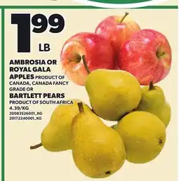 | AMBROSIA OR ROYAL GALA APPLES OR BARTLETT PEARS | Loblaws | $1.99 | 26 February 2026 | 04 March 2026 | |||