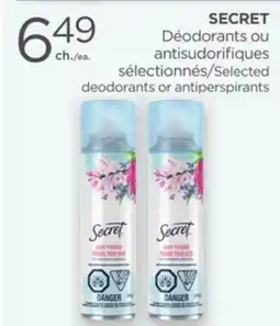 This week there are several deals for Secret available, such as at Proxim and other major chains. You will find offers like buy 1 get 1 free and Save up to 25$ or sharp discount prices on SECRET, GILLETTE OR SECRET DEODORANT & Old Spice, Secret Antiperspirant, Deodorant. With the filters you can easily select by packaging type, quantity, or your preferred retailer.