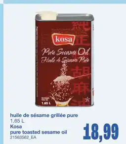 | HUILE DE SÉSAME GRILLÉ PURE, 1,65 L | Wholesale Club | $20.99 | 30 May 2024 | 26 June 2024 | |||