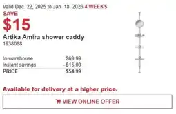 2Costco Artika Amira shower caddy offerArtika Amira shower caddyCostco$69.99$54.99Save $1522 December 202518 January 2026 View offer