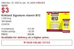 | 2 | Kirkland Signature vitamin B12 | Costco | $13.99 | $10.99 | Save $3 | 22 December 2025 | 18 January 2026 | View offer | |