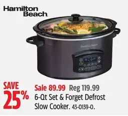 Canadian Tire 6-Q/L Set & Forget Defrost Slow Cooker Hamilton Beach offer6-Q/L Set & Forget Defrost Slow Cooker Hamilton BeachCanadian Tire$69.9918 December 202528 December 2025
