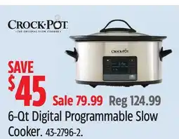 5Canadian Tire Crock-Pot 6-Qt Digital Programmable Slow Cooker offerCrock-Pot 6-Qt Digital Programmable Slow CookerCanadian Tire$124.98$79.99-36%22 January 202628 January 2026 View offer