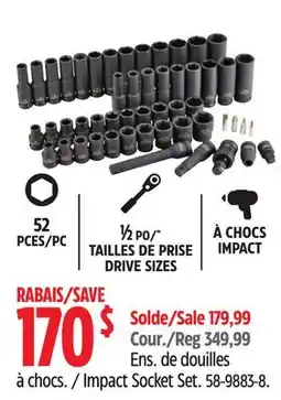 4Canadian Tire MAXIMUM 48-Pc Impact Socket Set offerMAXIMUM 48-Pc Impact Socket SetCanadian Tire$99.99-38%08 January 202614 January 2026 View offer