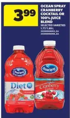 | OCEAN SPRAY CRANBERRY COCKTAIL, 1.89 L OR 100% JUICE BLEND, 1.77 L | Real Canadian Superstore | $3.99 | 31 October 2024 | 06 November 2024 | |||