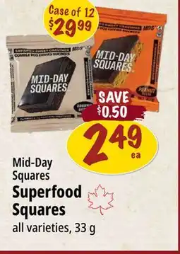 On this page you can compare the current prices of SQUARES at different retailers such as Farm Boy. Whether you are looking for Mid-Day Squares Superfood Squares, MID-DAY SQUARES PLANT-BASED SUPERFOOD SQUARES & NÜGABAR BARS OR SQUARES, you will immediately see where you can buy the product for the lowest price. The cheapest deal is automatically listed at the top, including retailer name, price, and validity period.