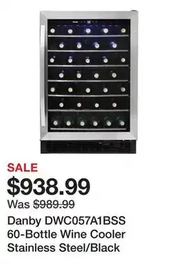 Newegg Danby DWC057A1BSS 60-Bottle Wine Cooler Stainless Steel/Black offerDanby DWC057A1BSS 60-Bottle Wine Cooler Stainless Steel/BlackNewegg$988.41$938.99$49.42 Discount09 February 202615 February 2026