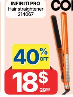 This week there are several deals for Straightener available, such as at Rossy and other major chains. You will find offers like buy 1 get 1 free and Save up to 25$ or sharp discount prices on INFINITI PRO Hair straightener, Conair Double-Ceramic Flat Iron Hair Straightener & ASPARAGUS. With the filters you can easily select by packaging type, quantity, or your preferred retailer.