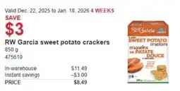 On this page you can compare the current prices of Sweet potato at different retailers such as Costco. Whether you are looking for RW Garcia sweet potato crackers, RW Garcia sweet potato crackers 850 g 475610 & RW Garcia 3 Seed Sweet Potato Crackers, 2 × 425 g, you will immediately see where you can buy the product for the lowest price. The cheapest deal is automatically listed at the top, including retailer name, price, and validity period.