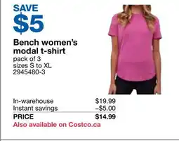 | 1 | Bench women's modal t-shirt | Costco | $19.99 | $14.99 | Save $5 | 19 January 2026 | 01 February 2026 | View offer | |