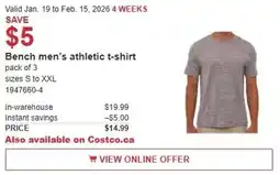 | 2 | Bench men's athletic t-shirt | Costco | $19.99 | $14.99 | Save $5 | 19 January 2026 | 01 February 2026 | View offer | |