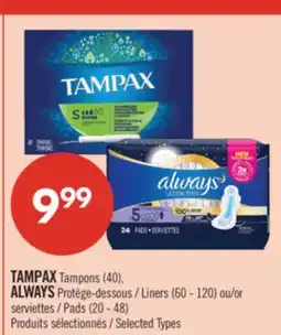 | TAMPAX Tampons (54), ALWAYS Liners (108 - 162) or serviettes | Pharmaprix | | $10.99 | | 29 November 2025 | 05 December 2025 |