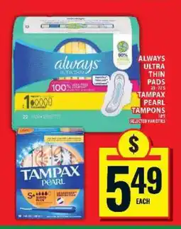 ALWAYS ULTRA THIN PADS OR TAMPAX PEARL TAMPONS