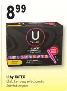 | U by KOTEX CLICK Tampons (45), ALWAYS Liners (116 - 216) or Pads (26-48) | Pharmaprix | $12.99 | 28 February 2026 | 05 March 2026 | |||
