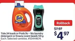 Tide 24 loads or Pods 9s - 16s laundry detergent or Downy scent beads