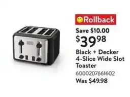 | 1 | Black + Decker 4-Slice Wide Slot Toaster | Walmart | $49.98 | $39.98 | Save $10 | 04 December 2025 | 24 December 2025 | View offer | |
