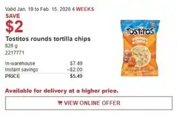 1Costco Tostitos rounds tortilla chips offerTostitos rounds tortilla chipsCostco$7.49$5.49Save $219 January 202601 February 2026 View offer