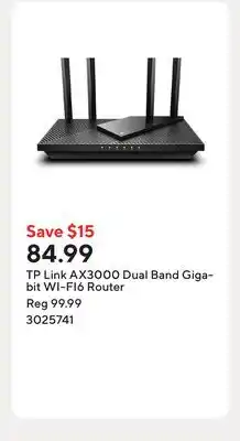 Staples TP Link AX3000 Dual Band Gigabit WI-FI6 Router offer