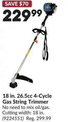 | 18 in. 26.5cc 4-Cycle Gas String Trimmer | Princess Auto | $298.69 | $229.99 | $68.70 Discount | 10 March 2026 | 22 March 2026 | |