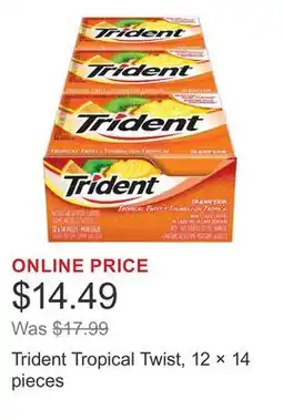 | Trident Tropical Twist, 12 × 14 pieces | Costco | $14.99 | 24 February 2025 | 02 March 2025 | |||
