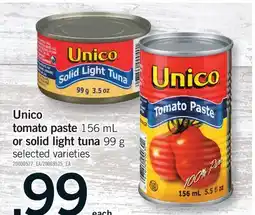 | UNICO TOMATO PASTE, 156 mL or SOLID LIGHT TUNA IN OIL, 99 g | Fortinos | $0.99 | 20 November 2025 | 26 November 2025 | |||