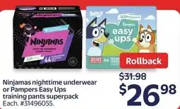 Walmart Ninjamas nighttime underwear or pampers easy ups training pants superpack offer