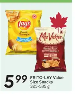 | FRITO LAY Value Size Snacks 275-480 g | Sobeys | $5.49 | 04 May 2023 | 10 May 2023 | |||