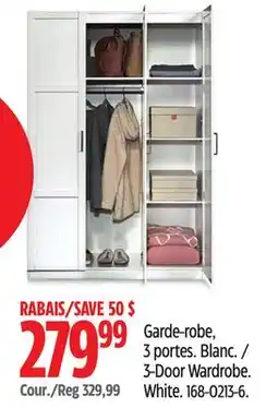 Canadian Tire Sauder 3-Door Wardrobe White offer