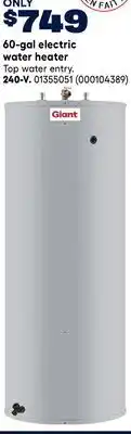 RONA Giant 40-gal electric water heater 240-V offerGiant 40-gal electric water heater 240-VRONA$639.78$595.00$44.78 Discount29 January 202611 February 2026