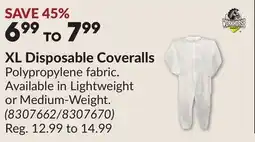 | XL Disposable Coveralls | Princess Auto | $8.99 | 07 May 2024 | 19 May 2024 | |||