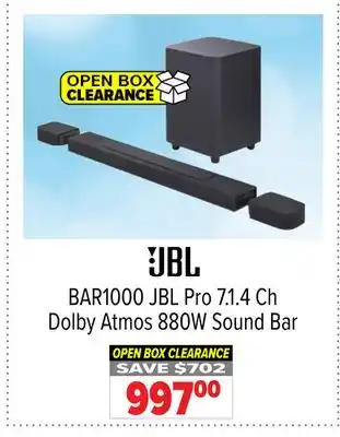 BAR1000 JBL Pro 7.1.4 Ch Dolby Atmos 880W Sound Bar discount at 2001 Audio Video